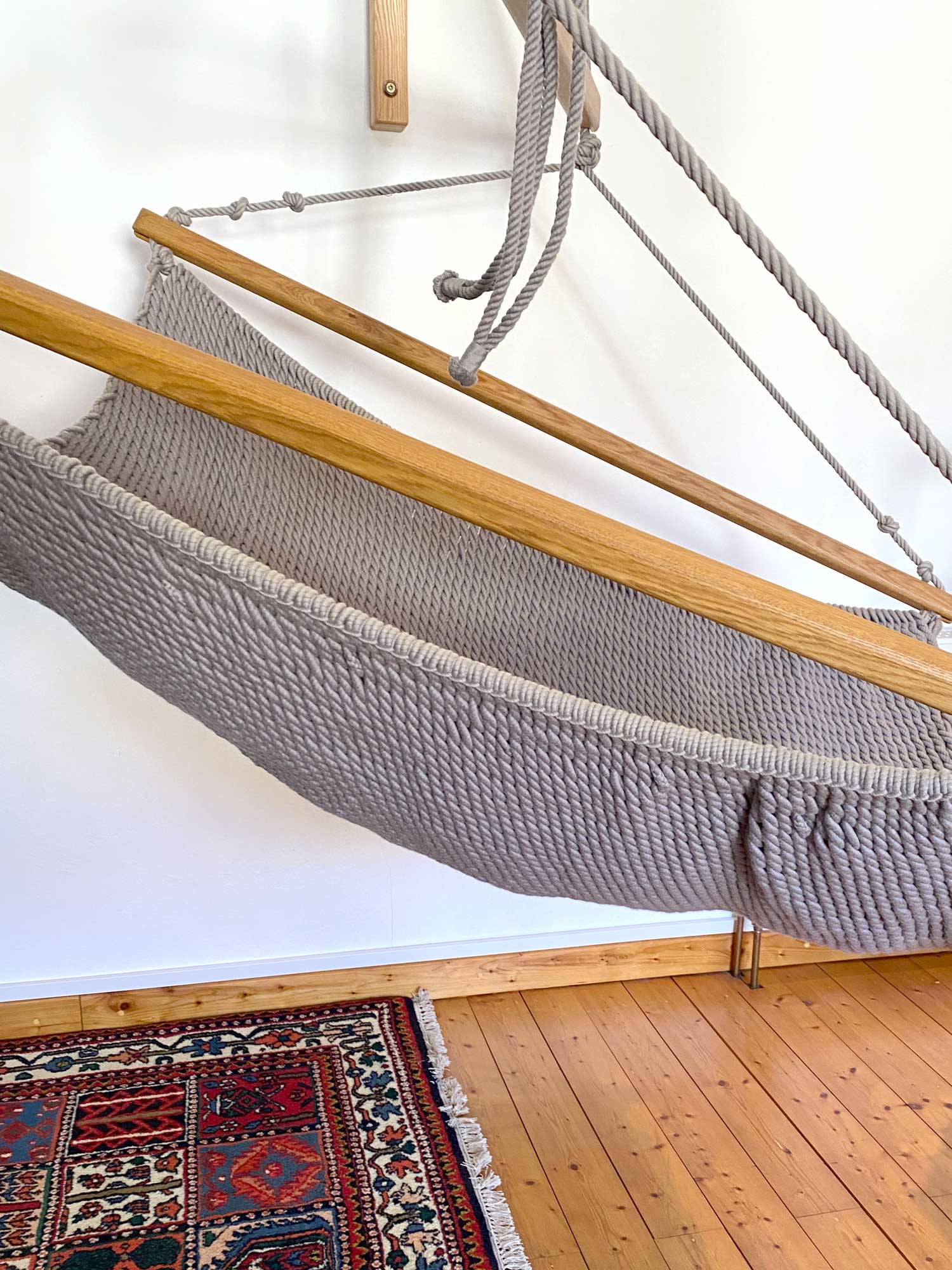 Genießen Sie die Entspannung und das angenehme Gefühl von Gehaltenwerden und Geborgenheit. Das superweiche und zugleich extrem belastbare Netzgeflecht ist einfach einladend – im TRAUMSCHWINGER können Sie besonders intensive Momente erleben.
