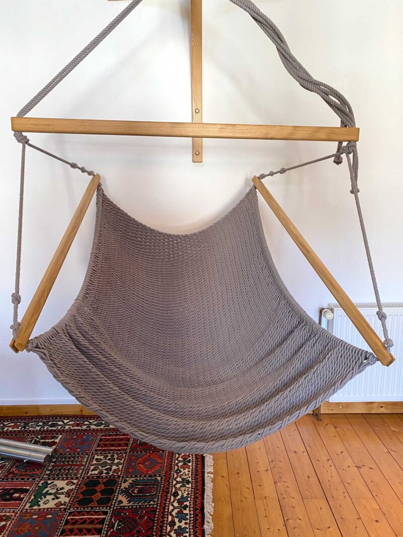 Vorführmodell – 2. Wahl – TRAUMSCHWINGER XXL – Netzfarbe stone, Holz hell geölt, Seiltasche natur